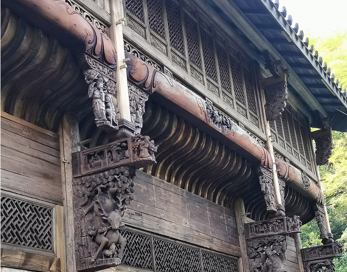 在材料的选择上,大部分都选用了木材作为主材料,木材属于柔性材料,材料抗拉、抗弯、抗弹性,木材在地震过程中能很好地吸收和消耗地震能量,并具有较强的恢复变形能力。如遇地震,木材能产生较大的横向变形而不造成断裂损伤。