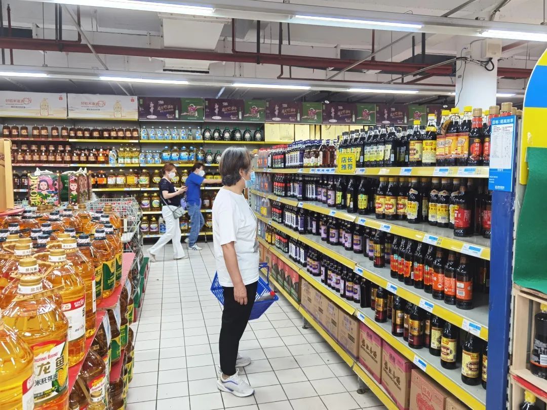大型商超也恢复了往日的热闹,位于海江路的联华超市里,各类货品均已补充完毕,商品种类应有尽有。居民们纷纷开启购物模式,精心挑选心意的商品,食用油、面条、面包、蔬菜等货品成为了居民们的首选之一。面对初露炎热的夏季,雪糕自然也成为了大热门之一。