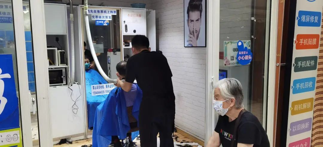 除了美食店和小型商店,其中最忙碌的莫过于理发店,一些“高人气”的理发店甚至排起了长龙。