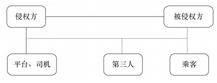 网约车发生交通事故时,侵权责任法律关系中,交通事故当事人可分为侵权方和被侵权方。可能的侵权方包括平台、司机、第三人等,可能的被侵权方包括第三人、乘客等。如图1所示,以下笔者主要从侵权方的角度来分析网约车交通事故中民事责任的配置。