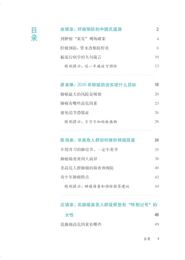 讲解癌症早筛和预防, 没有比这些医学大咖更合适的人选了。丰富的临床经验让他们不仅对肿瘤的成因、症状、治疗方案和效果了如指掌, 而且对于不同的患者特质、家族情况乃至生活习惯有深刻见解。严谨的科学训练和深厚的专业素养让他们能够准确且清晰地阐释肿瘤筛查和预防的原理和知识, 对于肿瘤这样专业壁垒极高、后果严重的病症来说, 这一点极为重要。在我多年的公共卫生生涯中, 见过不少这样的情况:病人或家属被不靠谱的文章引入歧途。这也让我萌发出一种责任感:一定要做一本权威、严肃的肿瘤筛查与预防读物!