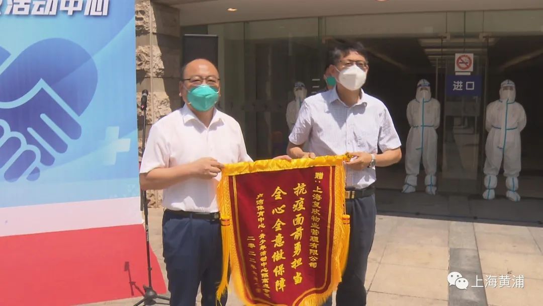 在抗击疫情的艰巨时刻,上海复欣物业管理有限公司彰显责任担当,组织动员保安、保洁力量尽锐出战,与时间赛跑,为隔离点有序运转作出重大贡献。黄浦区教育局局长郭金华为复欣物业颁授锦旗。