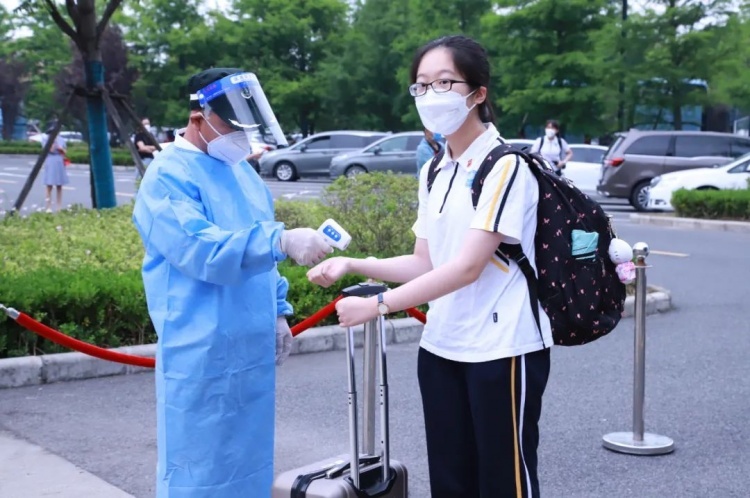 今天是上海初三学生返校复学的第一天。淅淅沥沥的梅雨,阻挡不了初三学子的归心似箭。浦东初中学校做好精心准备,有序安排学生错峰入校。