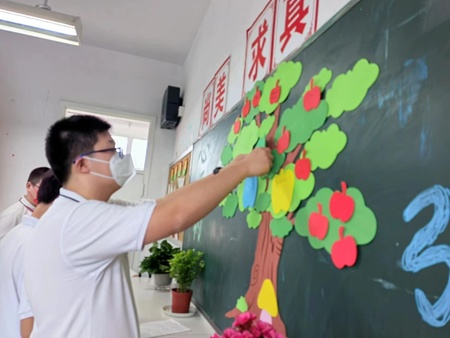 上海市金杨中学的每个初三班级,都用板报的方式设置心愿树,鼓励学生朝着目标努力,积极乐观向未来。