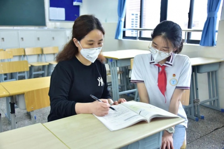 上海市陆行中学南校为每个初三班级设置了2个教室,老师在备用教室里为学生答疑。