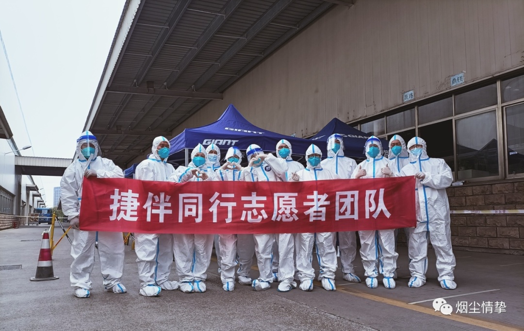 本轮疫情期间,位于昆山的捷安特工厂也曾因封控管控而停工停产。面对疫情,捷安特积极应对,一方面全力以赴抓好疫情防控各项工作,同时还在公司党总支领导下,成立了“捷伴同行”志愿者队伍。100多名来自工厂和门店的志愿者有的穿上“大白”,有的穿上“小蓝”,让自己成为一束光,走到哪里都要把“爱的光”点亮。