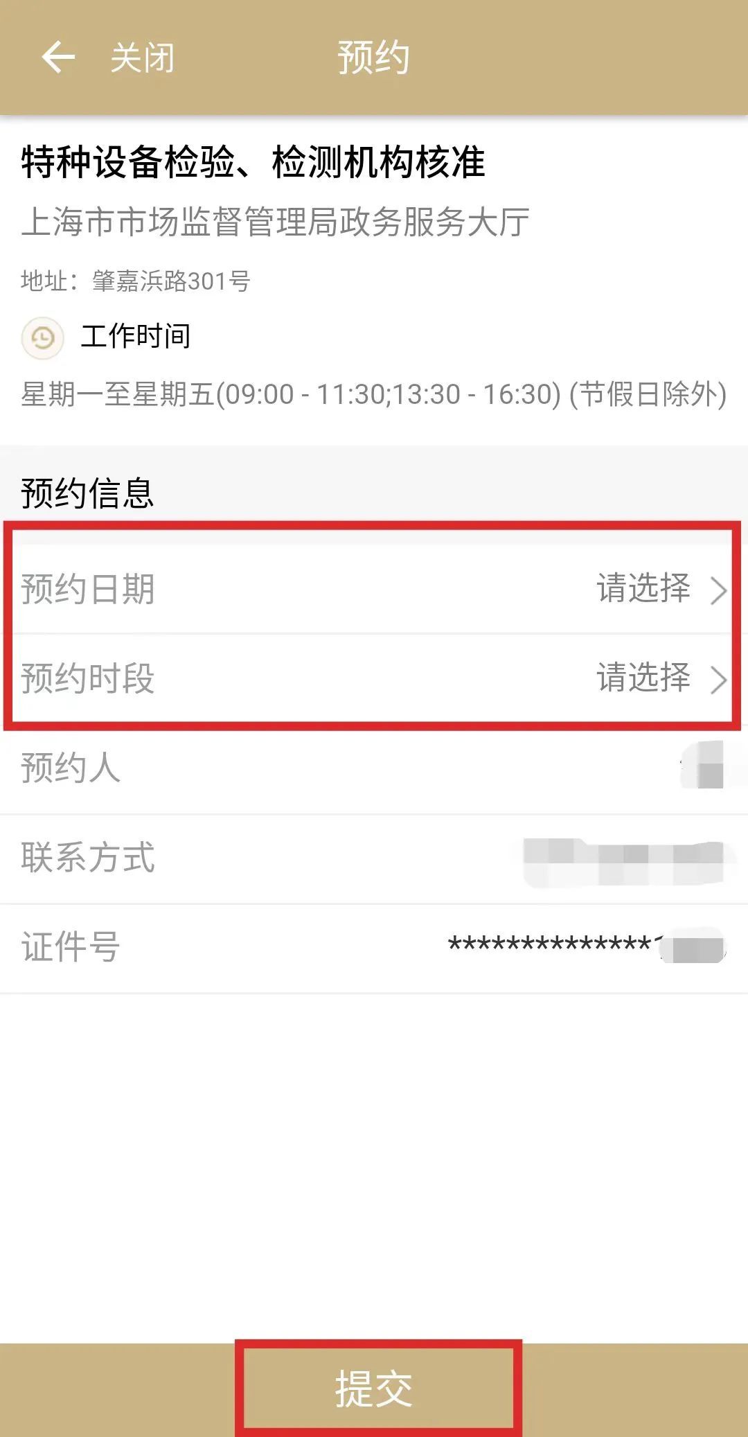 4.选择预约时间和预约时段,并提交。