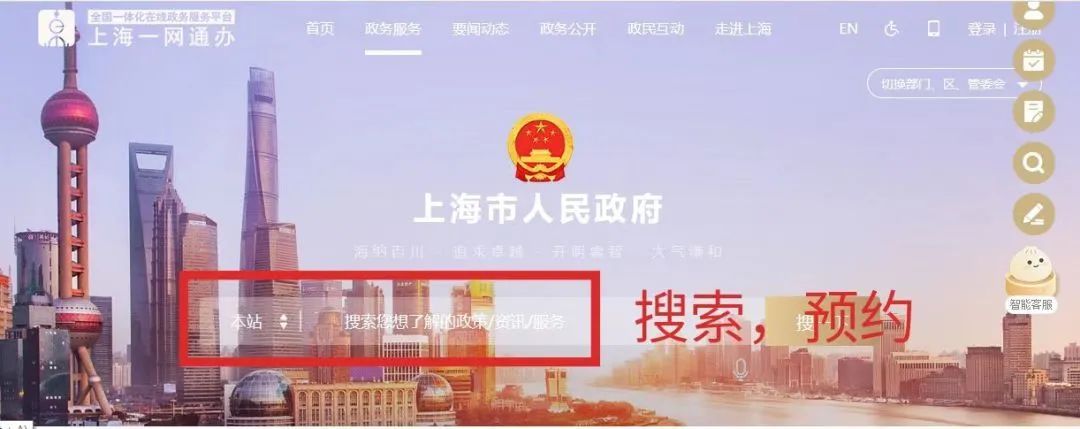 1.进入“一网通办”主页,在主页面直接搜索“预约”