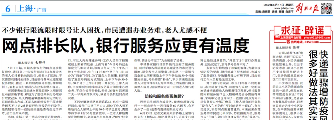 多家银行均给出了相似的解释,为落实疫情防控的要求,银行缩减了服务时间,也减少了服务窗口,导致服务能力有所下降,对此银行工作人员称是无奈之举。