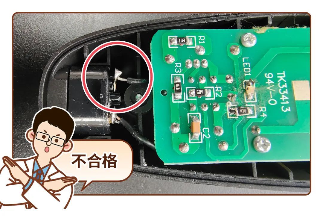 本次抽查发现2批次产品的插入输出插座的器具插脚尺寸应与输出插座的尺寸不一致。