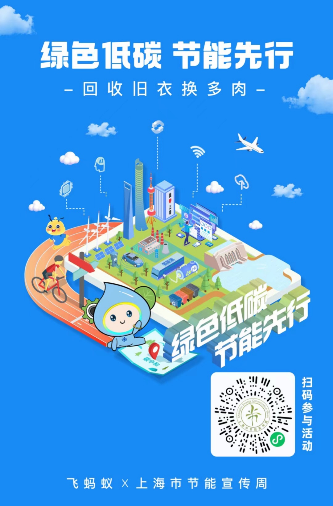 旧衣回收促进节能,绿色循环助力双碳,实现“绿水青山”伟大事业,离不开每个市民从小事做起。2022年上海市节能宣传周期间,在市经济信息化委、市机关事务管理局的指导和支持下,市节能协会联合“飞蚂蚁”环保平台共同推出——“绿色循环,旧衣换绿”活动,传递“让闲置再发光,让回收变简单”的理念,让市民从自己的一件旧衣物回收开始,共同助力节能减碳!