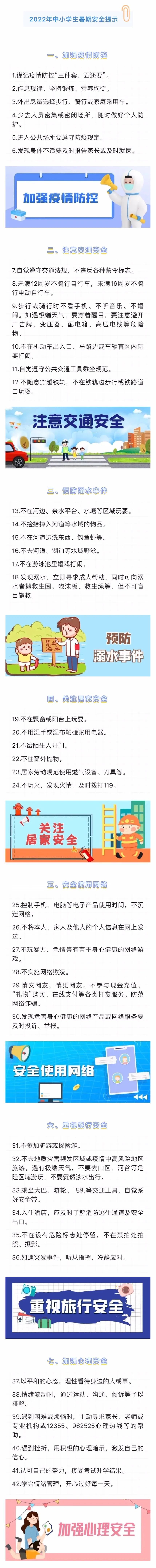 2022年暑假即将来临,为防范各类学生伤害事故,过一个平安、健康、快乐的暑假,市教委发布“2022年中小学生暑期安全提示”。暑期将至,为拥有一个平安、健康、快乐的暑期,提醒大家:安全无小事,家长和小朋友请认真阅读“2022年中小学生暑期安全提示”并牢记!