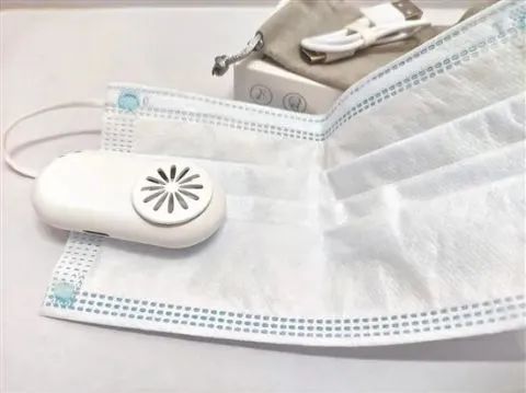 “口罩风扇”:一个USB充电款迷你小风扇,可夹在口罩上,扇叶的一面朝向口罩内,启动后,风力能带动口罩内外空气流通,从而缓解闷热感;