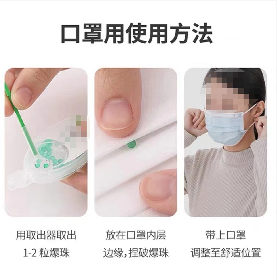 “口罩爆珠”的爆珠主要以精油制成,捏爆珠子后精油挥发,会产生清凉功效;