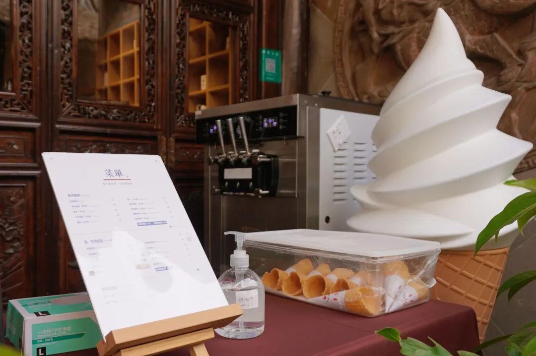 超大的冰激凌店招就竖在门口,路过的孩子们可不要错过啦!