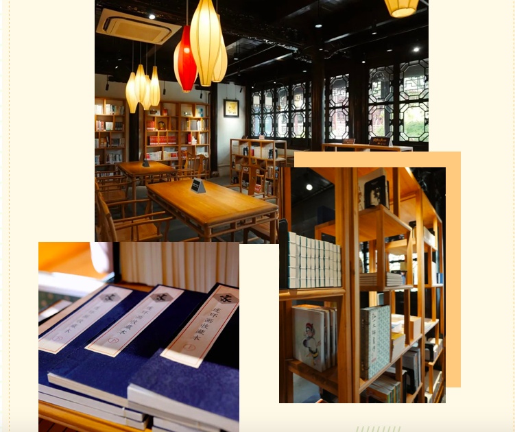 其整体为明清时期建筑风格,装修布置彰显江南文化特色,是喧闹都市中的一处静谧自读空间。这里藏书有 5100余册,其中4000册为连环画册,热爱“小人书”的你绝对不容错过噢!