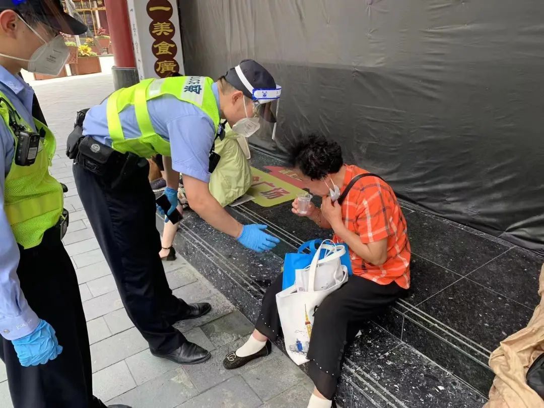 6月26日中午12时许,黄浦公安分局豫园派出所民警俞峻和王凯在巡逻至福佑路丽水路口时,发现一位老年妇女瘫坐在路边,脸色苍白浑身已被汗水湿透,民警立即上前询问老人情况。