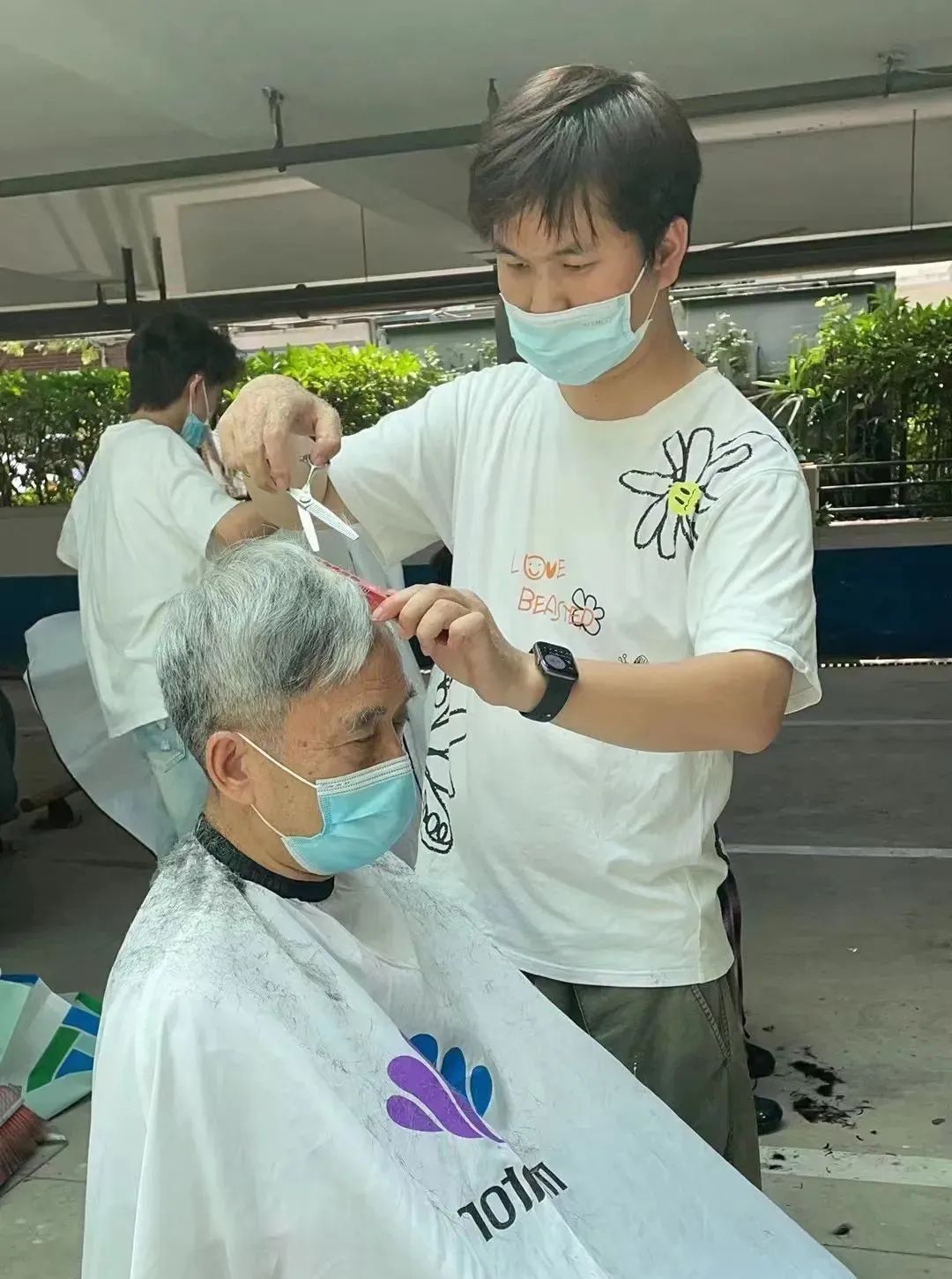 疫情期间,理发师参与社区义剪
