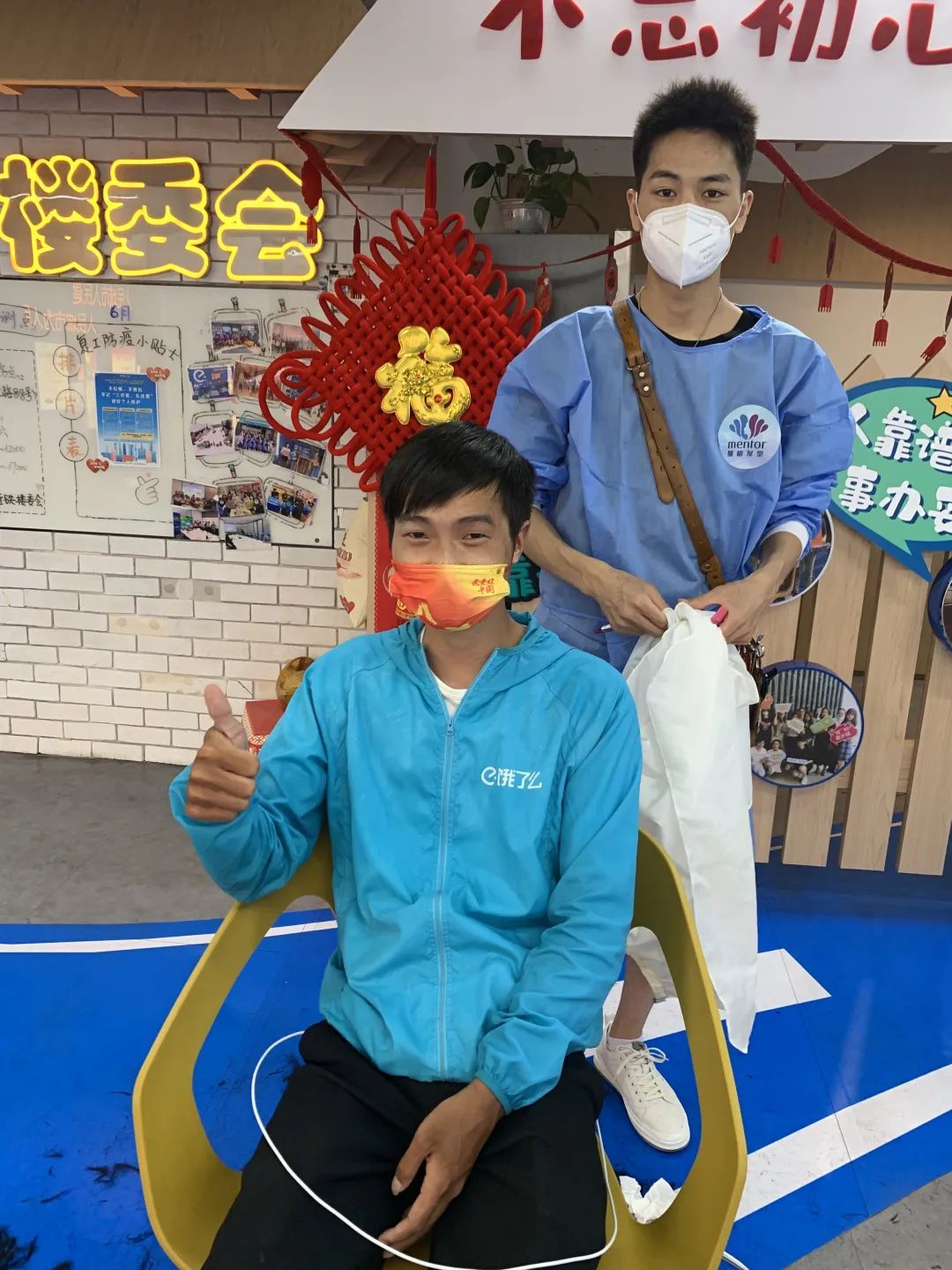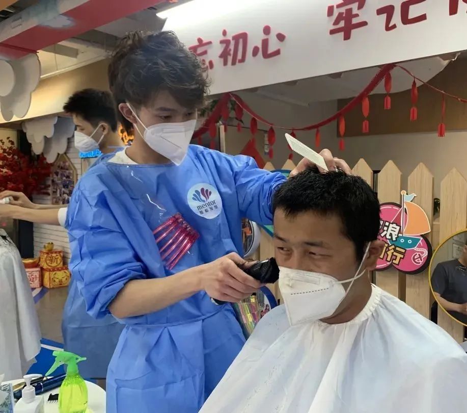 作为近铁城市广场的靠谱商户,自近铁楼委会成立以来,一直积极参与公益,定期为外卖小哥理发。疫情期间,商户的发型师还自愿参与社区义剪,为小区老年人们免费剪发。