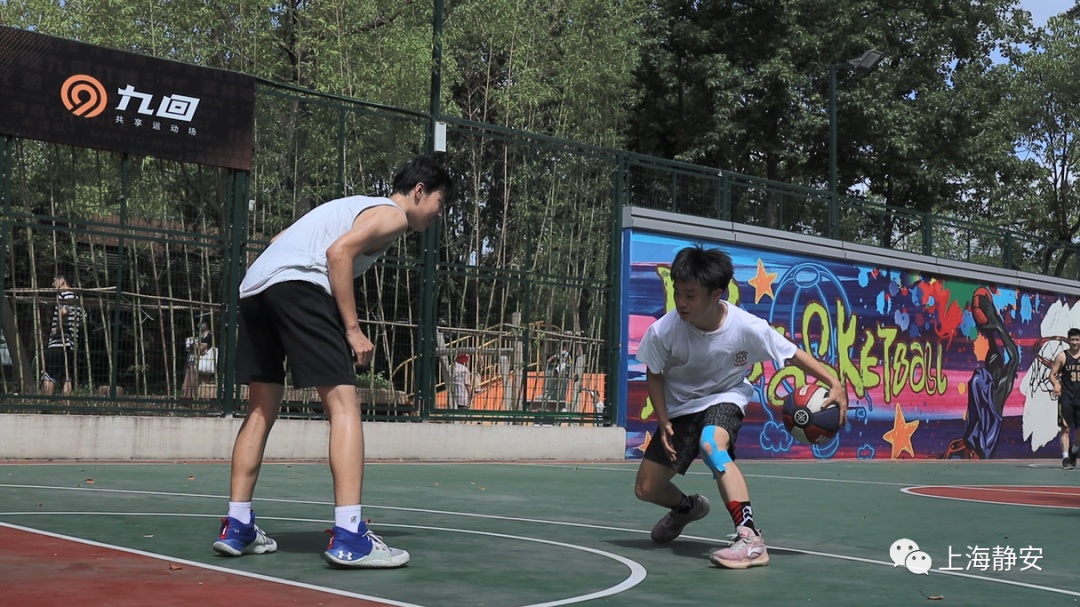 上午9时,暑热渐起,但两个篮球架均已被“占领”,有的在练投篮,有的在打三对,他们大多是正值暑假的学生。
