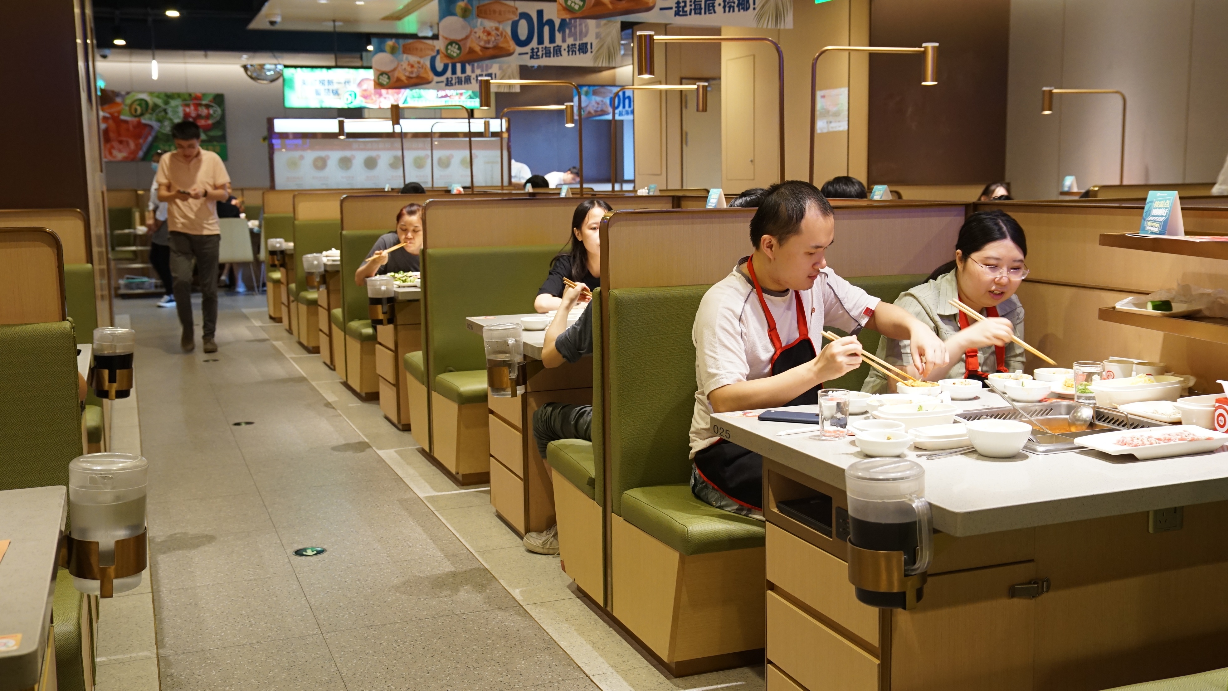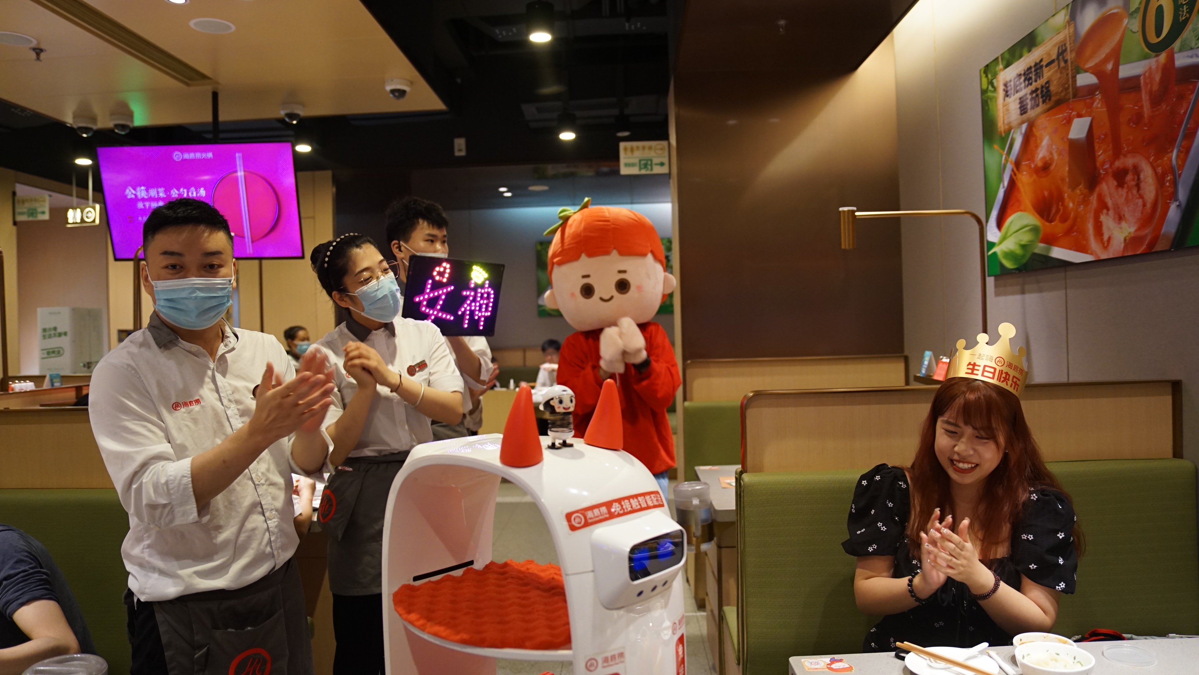 在店中,女孩小于和她的三位好朋友正围坐在桌前享用美食。小于一行人在上午十一点前就来到了大融城,赶在用餐高峰时间到来前进入店内。小于对记者说,自己上一次在餐厅堂食还是2月14日“情人节”,当时吃的正好也是海底捞。今天小于过生日,和朋友们选择海底捞是因为这里更有“氛围”。这个“氛围”指的就是海底捞的一项特色服务,没一会,得知小于今天生日的店员们簇拥在一起来到小于桌前,一同为小于唱歌祝福。即便已经做好了心理准备,但是突如其来的“惊喜”还是让小于又开心又害羞。