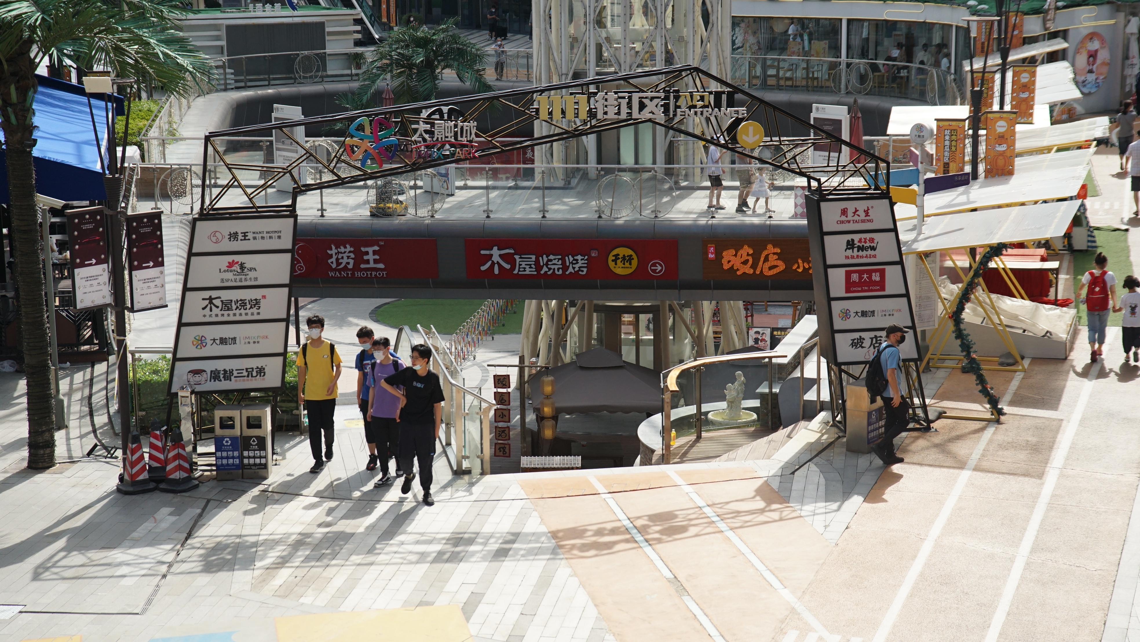 走进大融城,各类饮品店、快餐店、以及火锅烧烤等餐饮店均正常营业,顾客进入店内还需再次扫描门店的场所码。大融城商圈内的餐饮店遍布户内户外,户外一至三层、主楼内地下一层至地上四层均有餐饮品牌入驻。