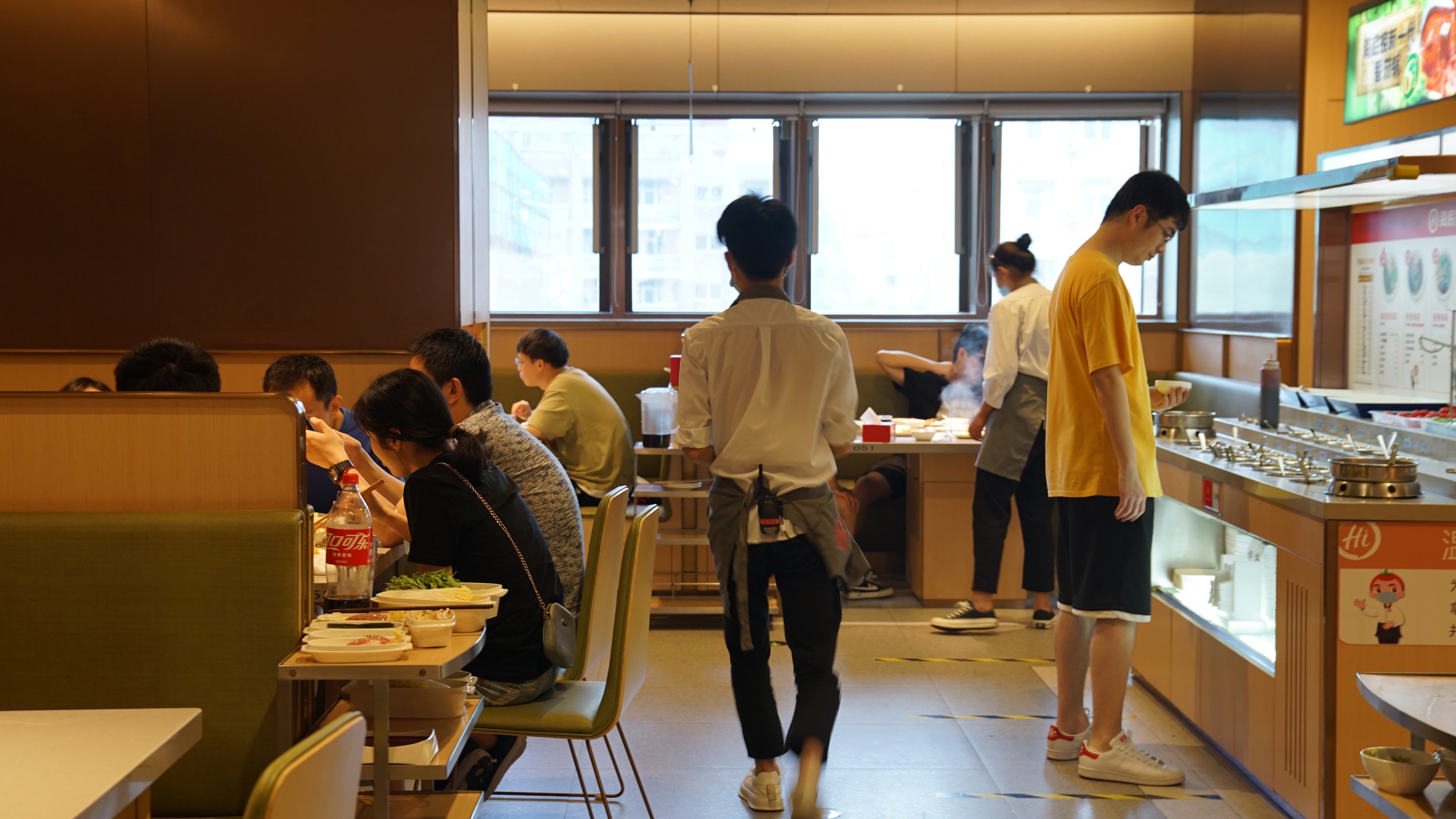 据融媒体记者观察,双休日中,大融城商圈内人气回升不少,但并没有达到“火爆”和拥挤的程度,各家门店前也没有出现排起长龙的情况。相较于其他餐品,火锅不方便订购外卖或打包带走,因此对于消费者来说有着更大的堂食需求。诸如高老九、海底捞等火锅店,都成为了顾客的热门选择。