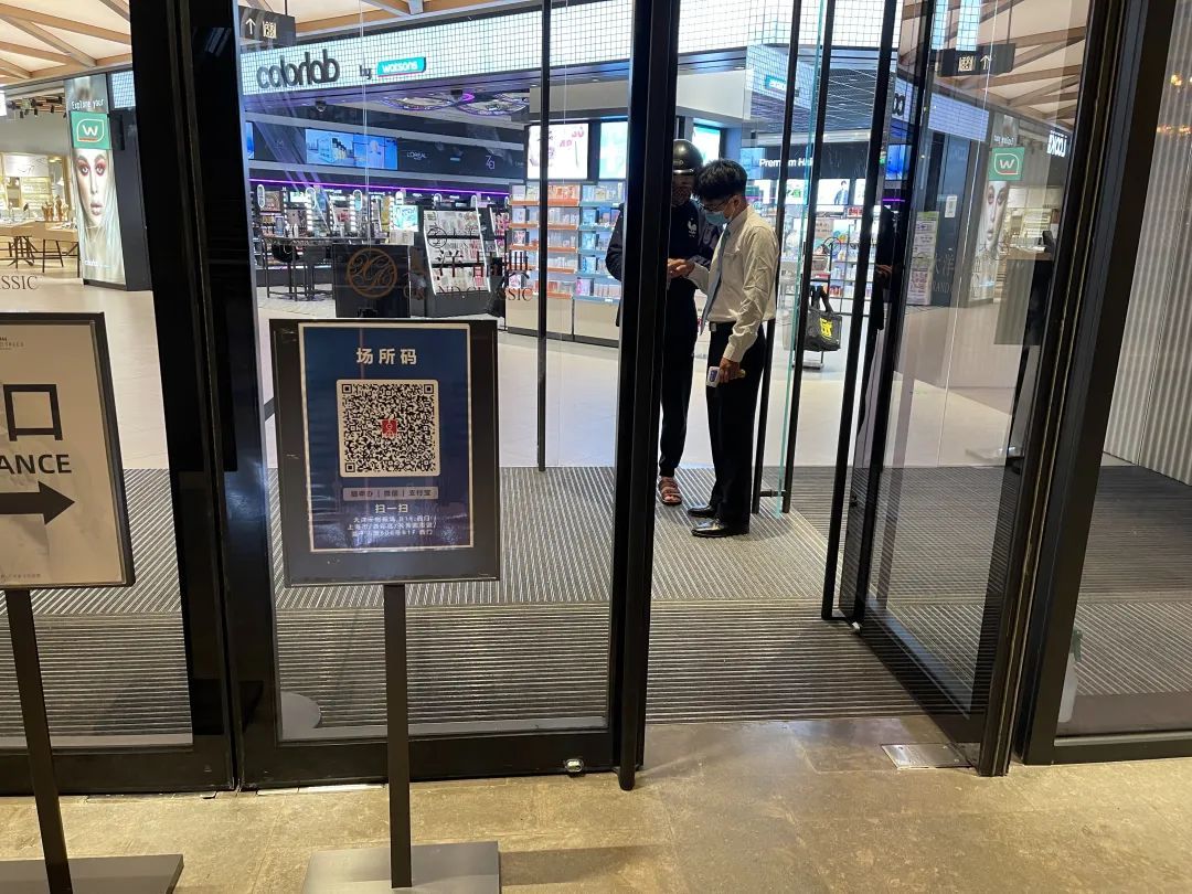 在市区一些大型商场、购物中心和餐馆,记者注意到,这些场所均已布设了“场所码”或“数字哨兵”,入口处还有工作人员查验,如果顾客核验结果不符合要求,会被劝说不要入内。在静安区的晶品购物中心,两名顾客试图进入商场,仅有一人在“数字哨兵”上扫码核验,另一人被保安拦下后扫码,其核酸检测结果是5天前的,只能离开。