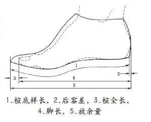GB/T 3293-2017《中国鞋楦系列》规定,内长计算公式为:内长(mm)=中国鞋号×10+放余量-后容差,拖鞋的放余量-后容差为10mm。