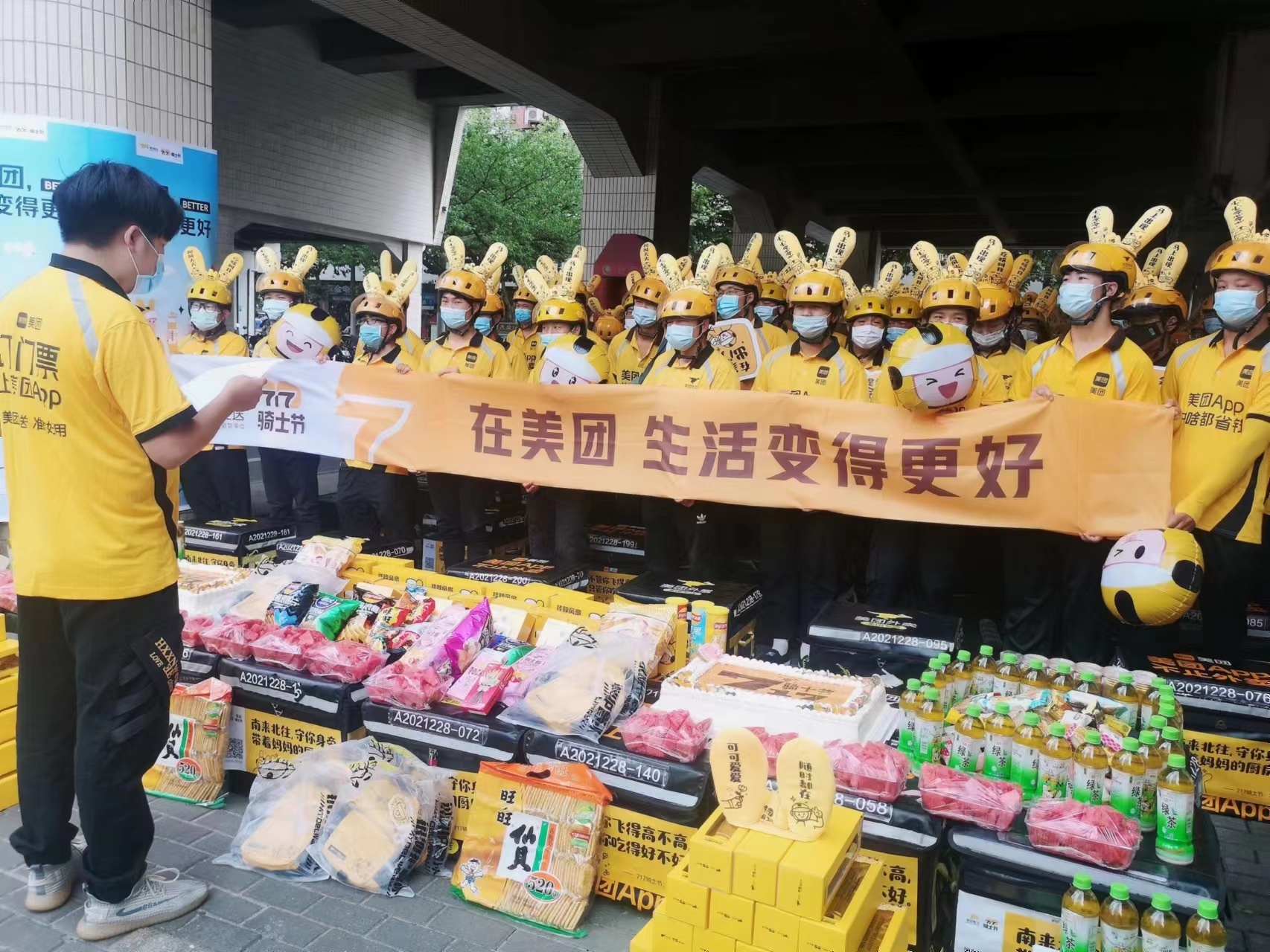 在美团外卖静安区静安寺站点,每天中午送单高峰结束后,站长范俊杰会号召骑手来站点休息,“一块儿吃吃西瓜喝喝饮料降降温,给年纪大的骑手发十滴水等防暑物品,也会帮他们测血压。”