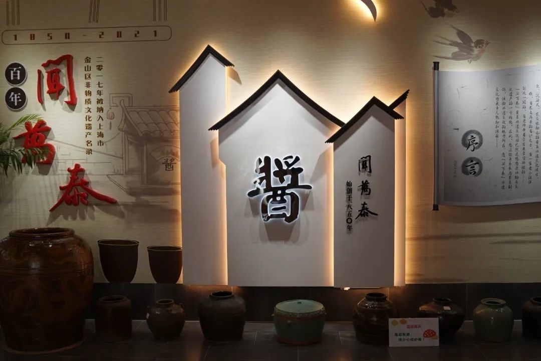 于是,集“种植—观光—采摘—体验—加工”一体化的“闻万泰”非遗文化展示馆诞生了。场馆由工厂车间改造而成,面积约350平方米。馆内通过大量实物和文字图片资料,展示了张堰酱菜发展的百年历史和制作技艺。还设置了互动体验区域,让游客在亲手制作酱菜的过程中,感受非遗文化,感受匠人精神。