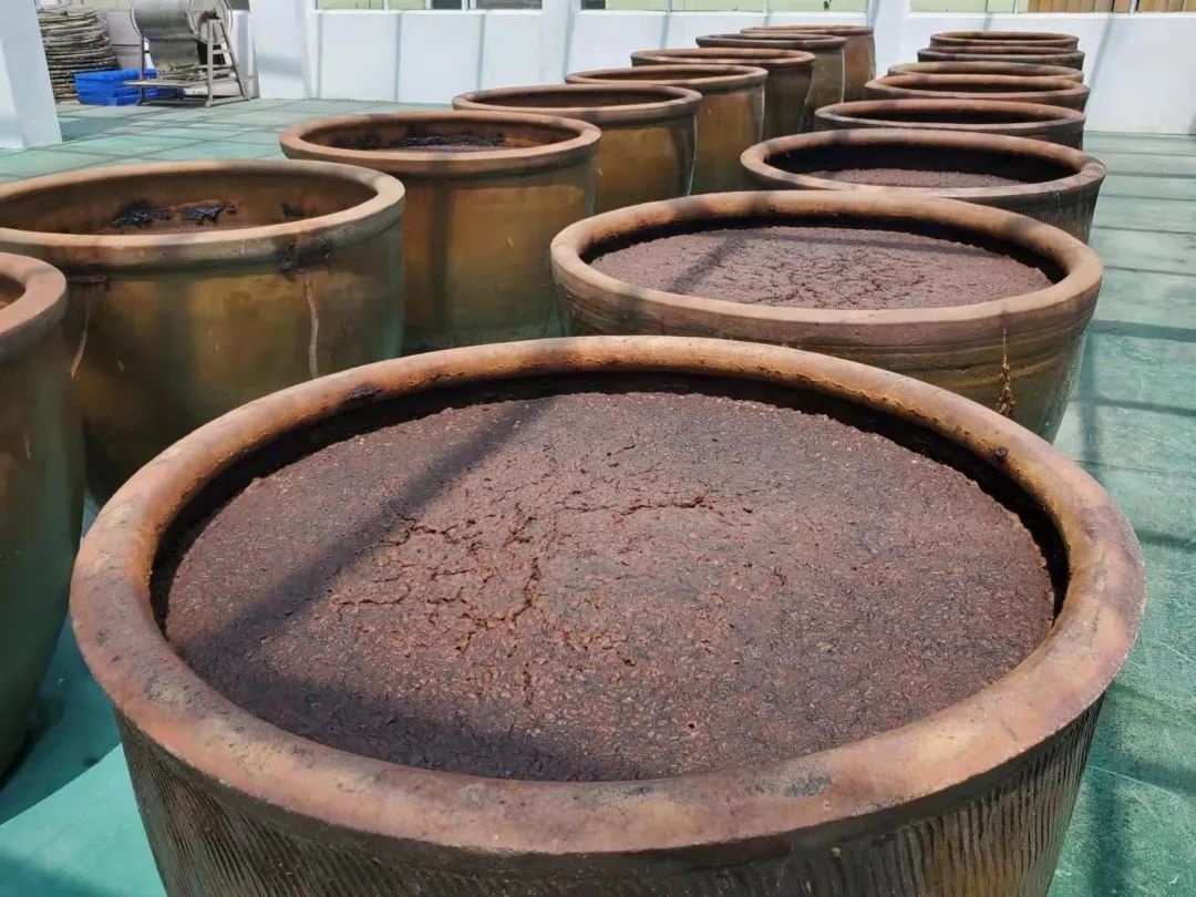 晒制过程中,需有经验的师傅定期查看,把握晒制时间长短。第一次酱渍完成后将菜坯撩起清洗,将成熟的面酱进行压榨。再将菜坯与熟酱混合,进行二次酱渍。