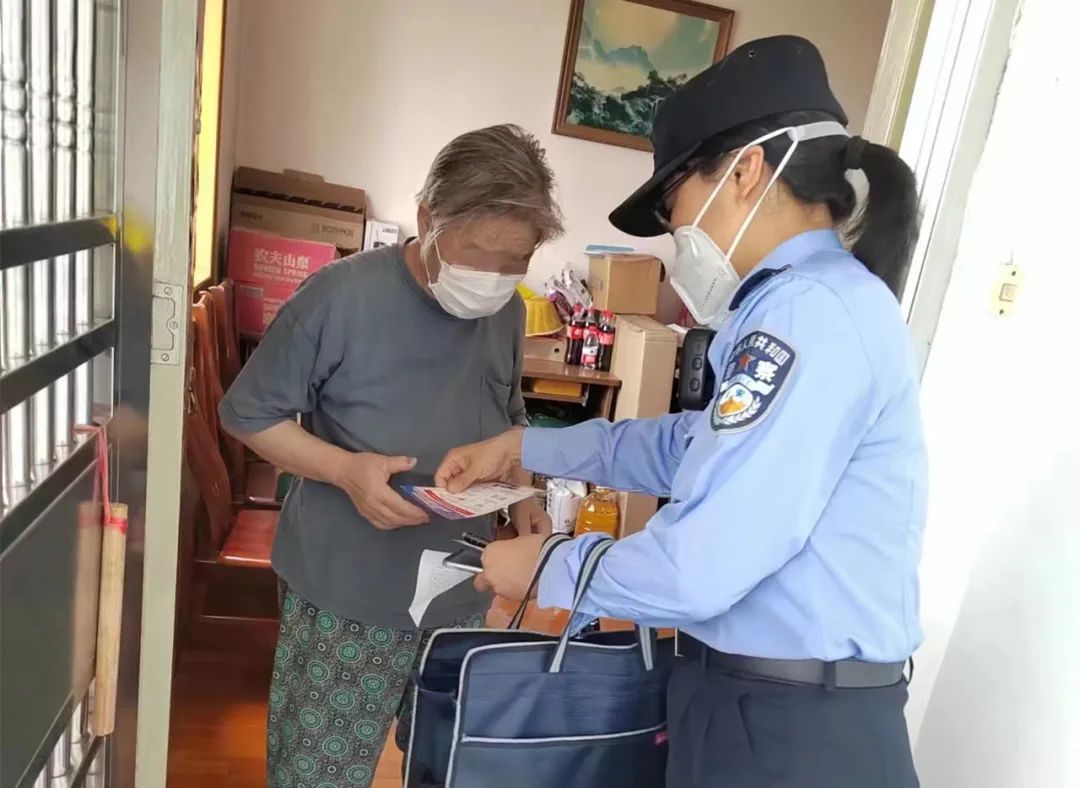 天平路派出所社区民警袁英英与居委干部特地来到独居老人李阿婆家中,查看老人的生活情况,并开展消防安全、反诈防范宣传。