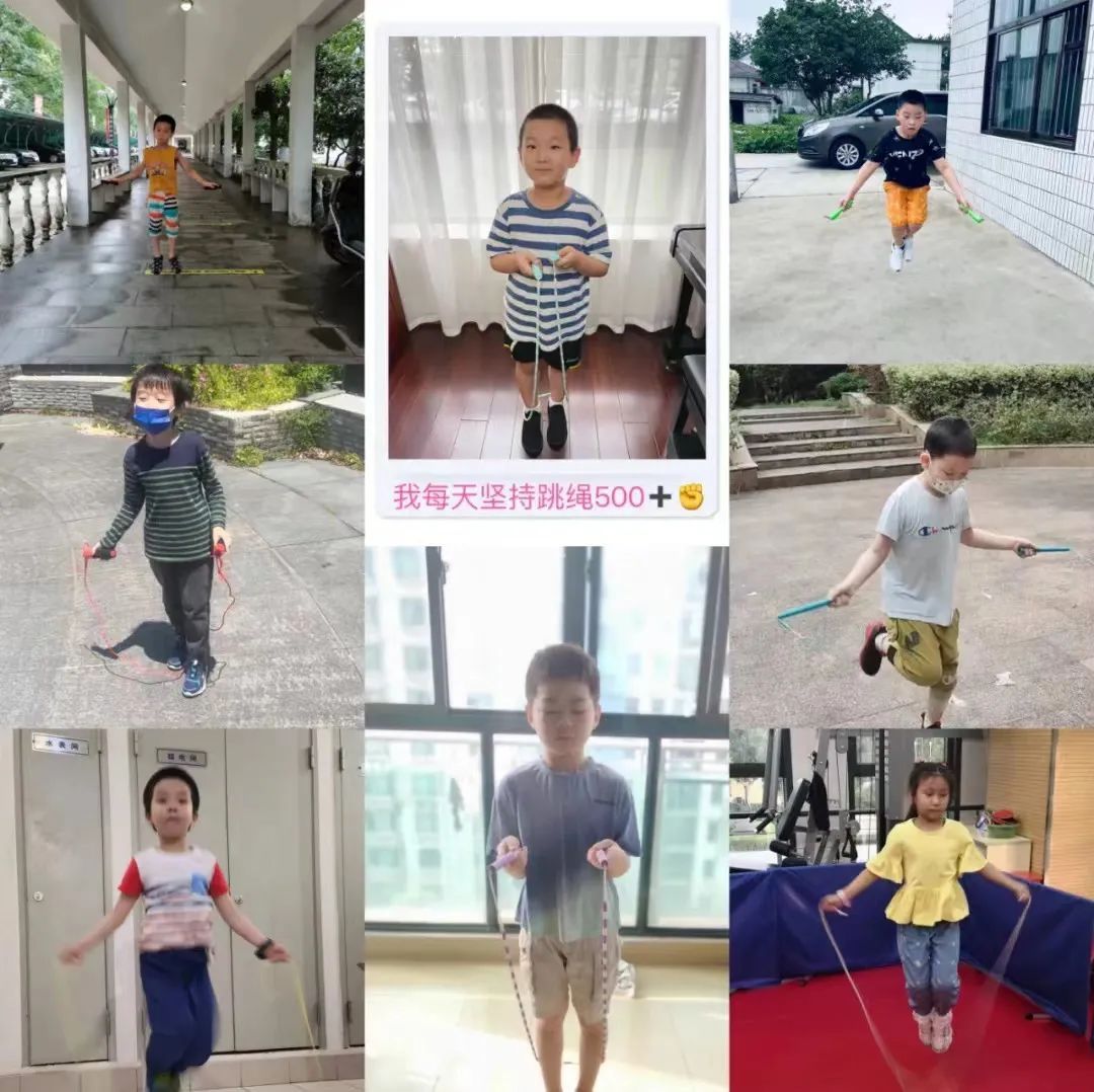 暑假期间,虽然没有了常规的体育课,但体育老师苏老师把短绳练习“一天五组”的要求早早写入了小囡们的暑假作业中。一年级的同学们谨记苏老师嘱托,每天练习短绳,不断刷新自己的短绳记录,争取在新学期的早锻炼上与同伴们来一场短绳大比拼。