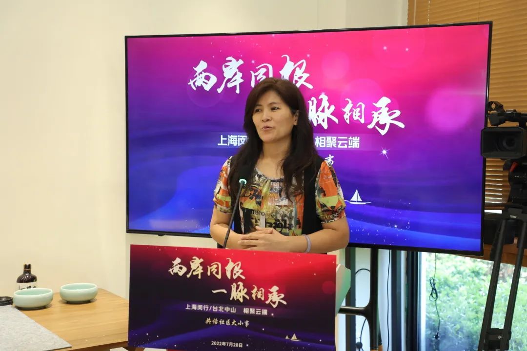 7月28日,两岸社区文化云端交流活动以视频连线的方式在上海闵行和台北中山举行,两地嘉宾在云端重聚,相互分享台湾社区志工文化和闵行基层社区自治文化。上海市台办副主任李骁东、闵行区委常委吴继华,国民党中山区党部主委林坤谟、台北中山区复华里里长黄展辉等里长代表,以及两地台商、台胞、社区工作者、志愿者出席了活动。