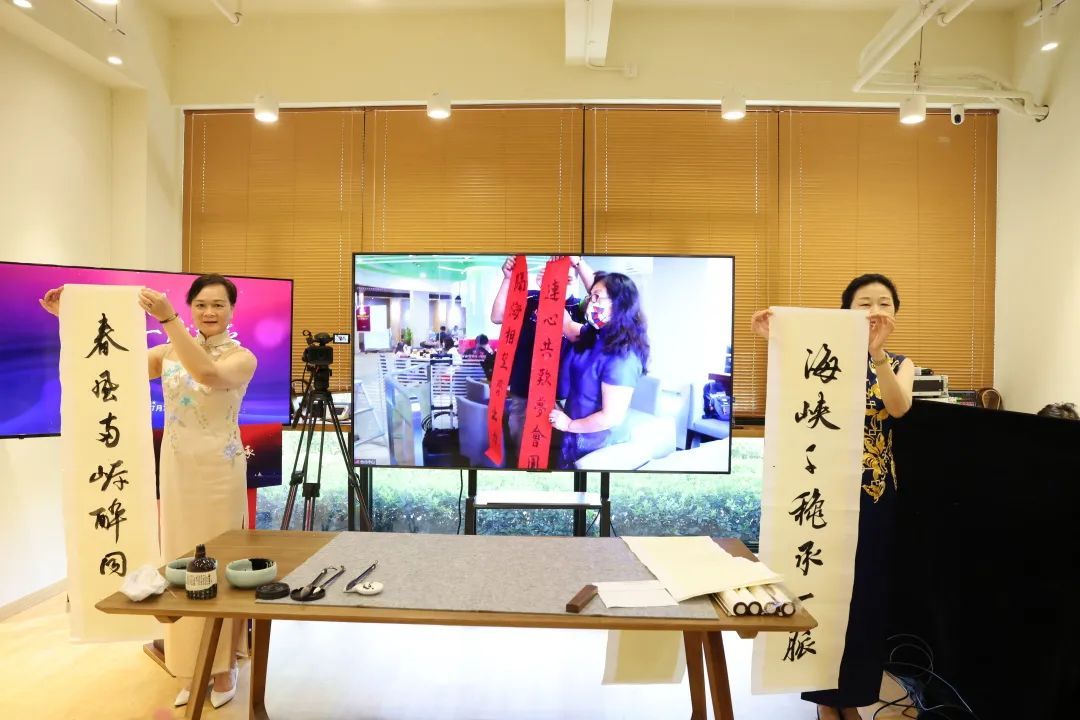古美路街道党工委书记张伟麟与台湾书法家共书对联,展现了两地一脉相承的文化基因,表达了同心共圆中国梦的美好心愿。