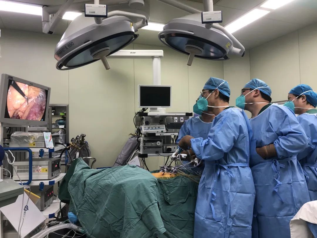 手术过程中,刘东明在患者腹部打了几个小孔,超声刀由此进入,最后通过小孔取出肿瘤。