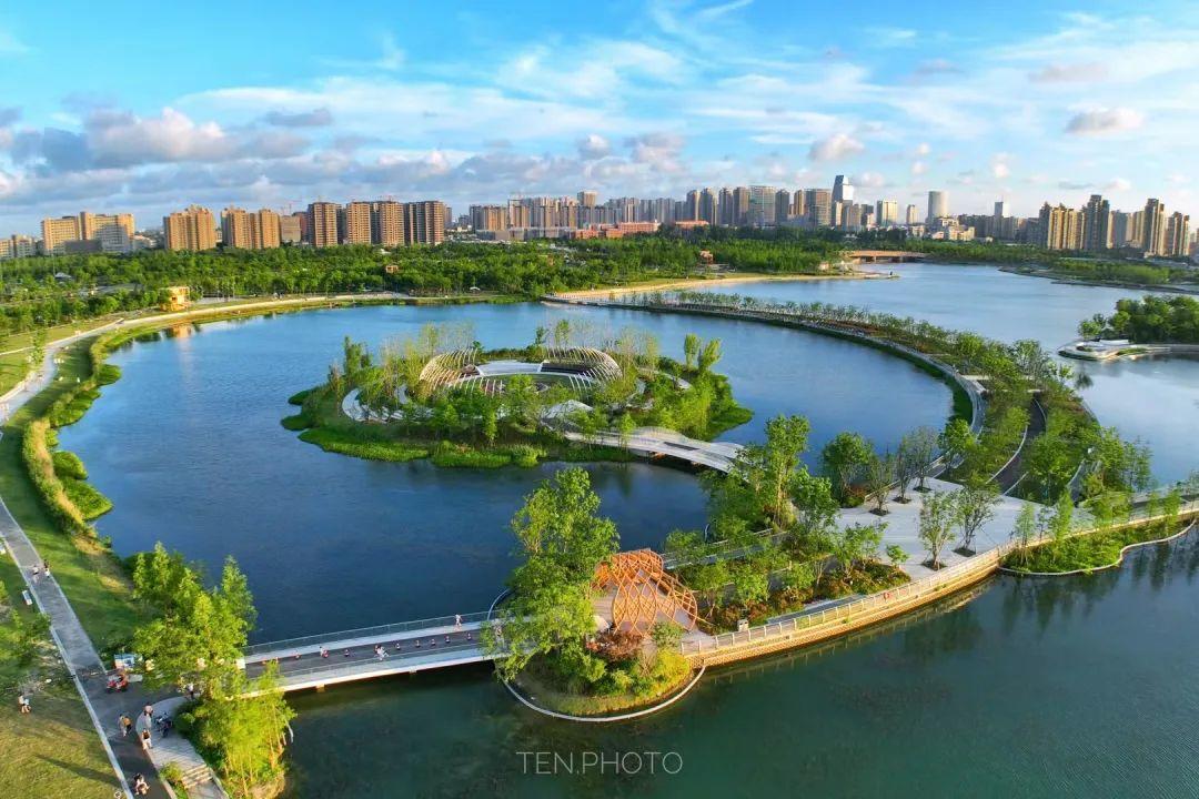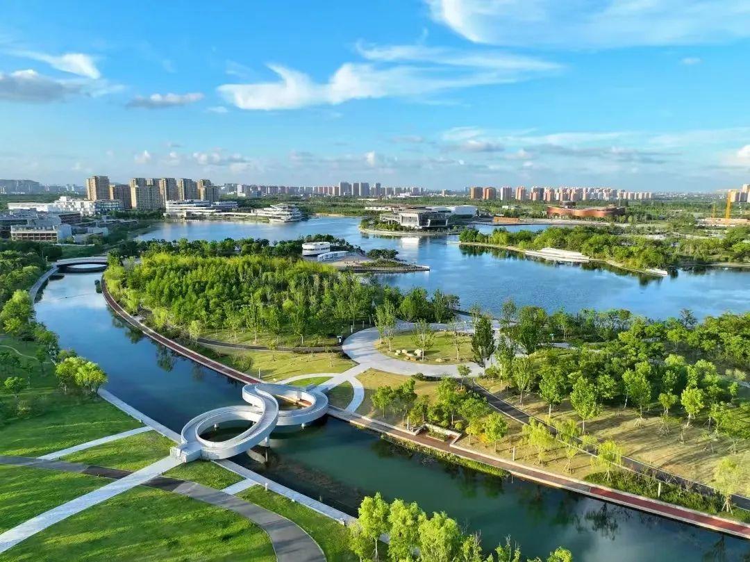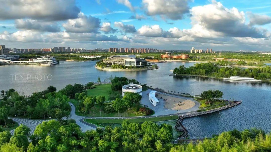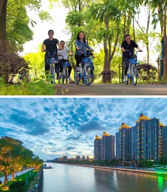 融合水脉、文脉、生态、健身、服务等功能的河道生态绿廊,彰显了新江南水乡风貌,市民们出门便可进园,处处皆能赏景。