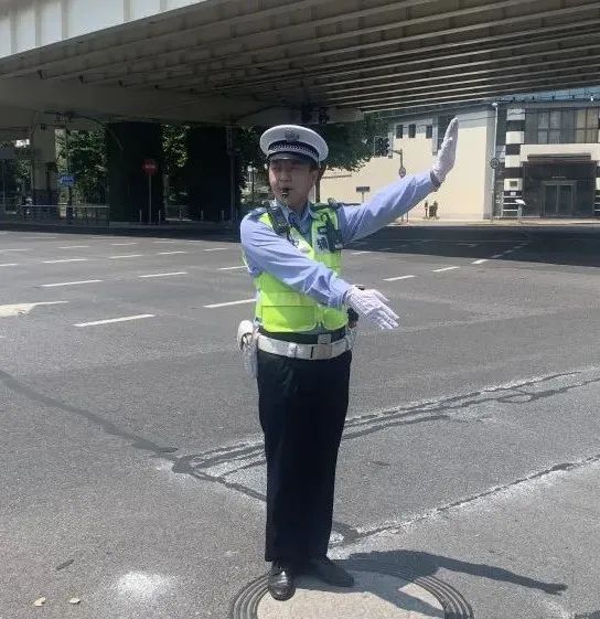 烈日炎炎下,稍稍在路面上一站,就会热得汗流浃背。而在“市级文明岗”延安西路虹许路岗段,辅警胡欣磊的警服已全然湿透。今年的高温天,胡欣磊日均露天执勤长达6个小时,日均劝阻100余起非机动车和行人的交通违法行为。