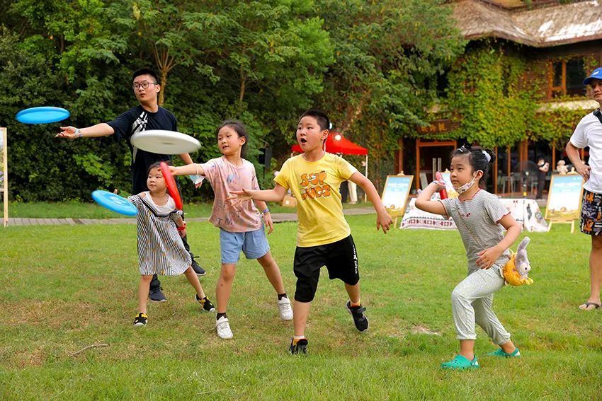 和孩子们一起在草坪上投掷飞盘,温习童年时光,回味一下小时候的纯真与快乐。