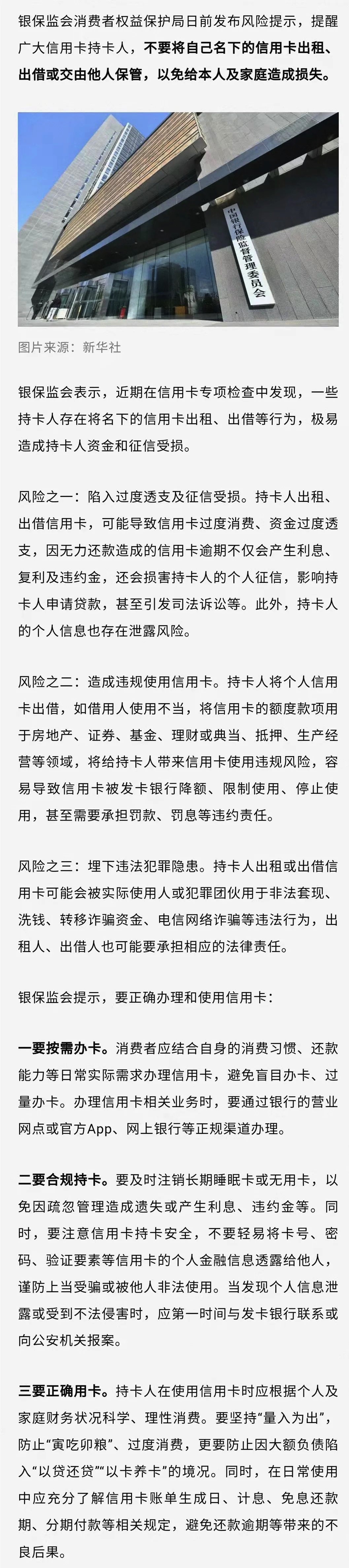 事关你的信用卡!银保监会提示