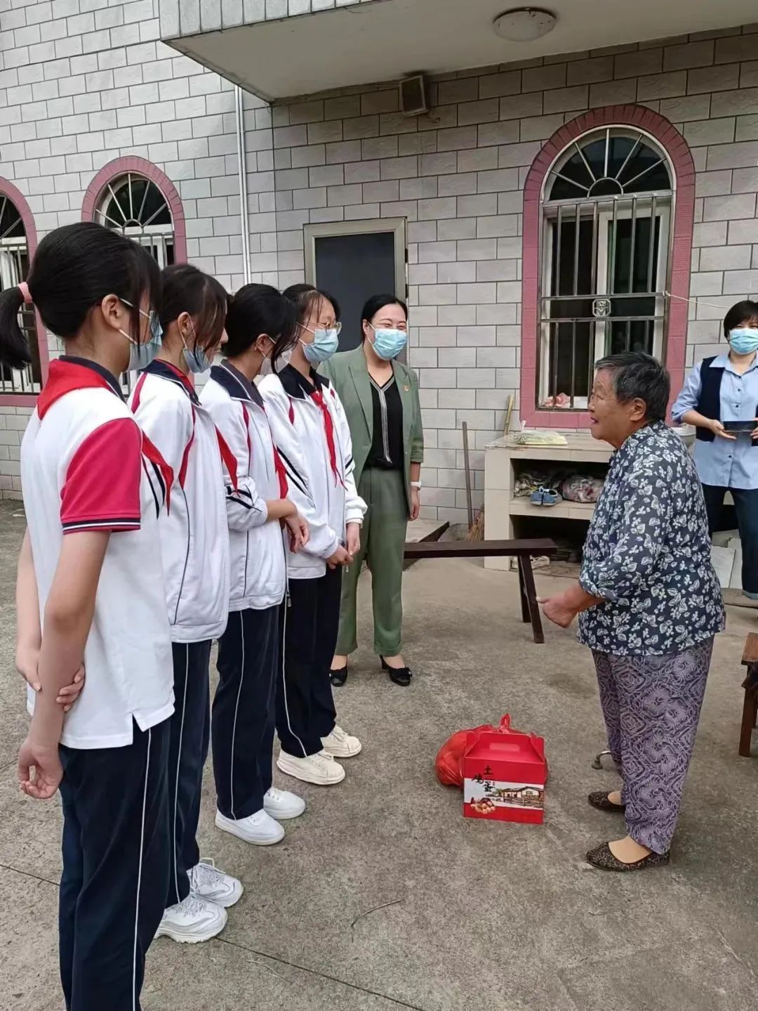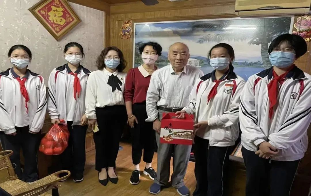 崇明区实验中学还组织少先队员代表到元六村、金月湾社区、城西社区、永凤社区慰问看望爷爷奶奶,队员们为爷爷奶奶送上精心准备的水果、鸡蛋,同时送上真挚的重阳节祝福。