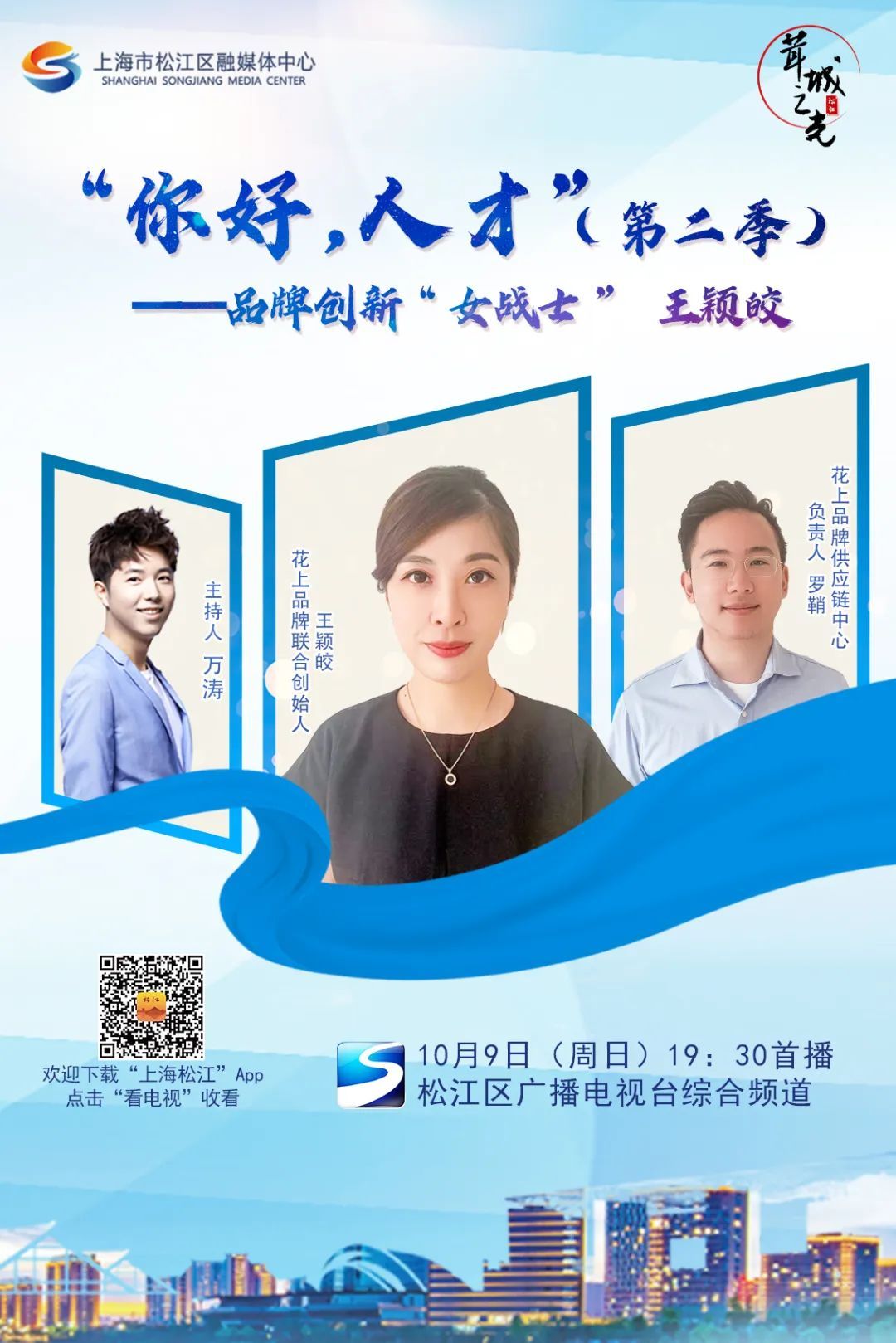 松江区广播电视台综合频道19、219(高清)频道,10月9日(周日)19:30首播,也可扫码下载“上海松江”App点击“看电视”收看。
