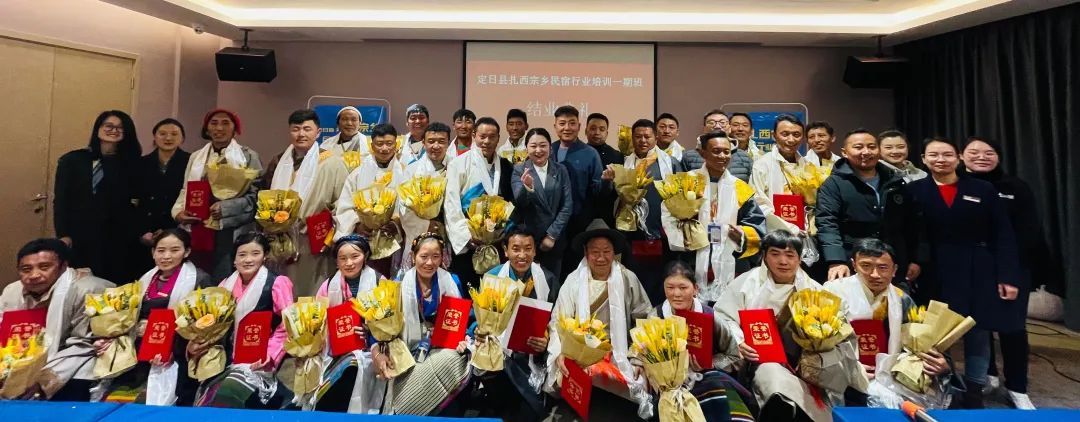 作为乡村旅游的核心痛点之一,较多的当地旅游从业者,没有接受过系统的培训,难以为游客提供高质量旅游服务。人才培养是珠峰小镇无法回避的考验,也是珠峰小镇能否实现内生增长的关键所在。为此,2021年10月初,在上海援藏联络组的指导下,“携程集团×平措康桑西藏文旅人才孵化基地”在珠峰小镇正式挂牌,旨在发挥本土力量与市场前沿力量相结合的优势,聚焦扎西宗珠峰小镇、辐射全西藏,以乡村振兴为使命,加强培训输出、提升旅游服务接待能力。同年12月初,该基地开展了定日县扎西宗乡民宿行业培训一期班,对当地27户民宿主进行理论与实践结合、实用性强的经营培训。12月中旬,在西藏自治区旅游发展厅指导和组织下,该基地面向全区7地市开展酒店民宿行业经营培训,扎西宗乡选派了优质酒店民宿主参加,深入学习。