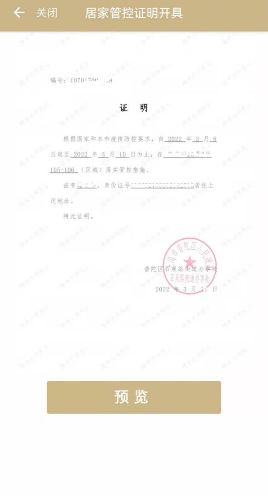近期,部分居民因落实防控要求需要向工作单位或公司出具居家管控的证明。为满足居民办事需求,减少人与人的直接接触,降低疫情传播的风险,普陀区“一网通办”积极助力疫情防控工作,已在“随申办”“普陀旗舰店”上线了“居家健康证明”服务事项。居住在普陀的居民只需要在“随申办”上动动手指,足不出户就能获取证明,非常快捷高效。
