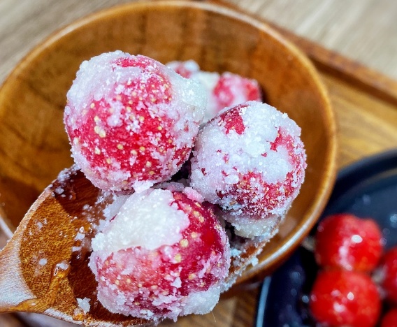 红彤彤的果子裹上一层透明糖壳