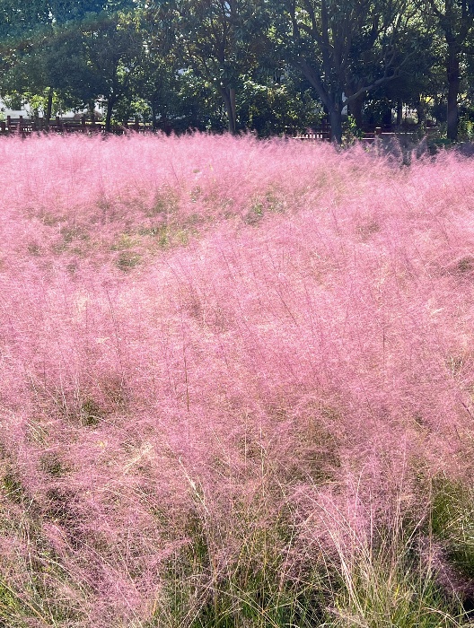 走进赵王村,映入眼帘的是成片金黄的稻田,在微风吹拂下涌起层层稻浪,与平坦宽阔的村道、整齐划一的房舍相互映衬,一派美丽乡村的丰收景象。不远处,一簇簇粉黛乱子草正绚烂绽放,将大地铺成一片浪漫的粉色海洋。