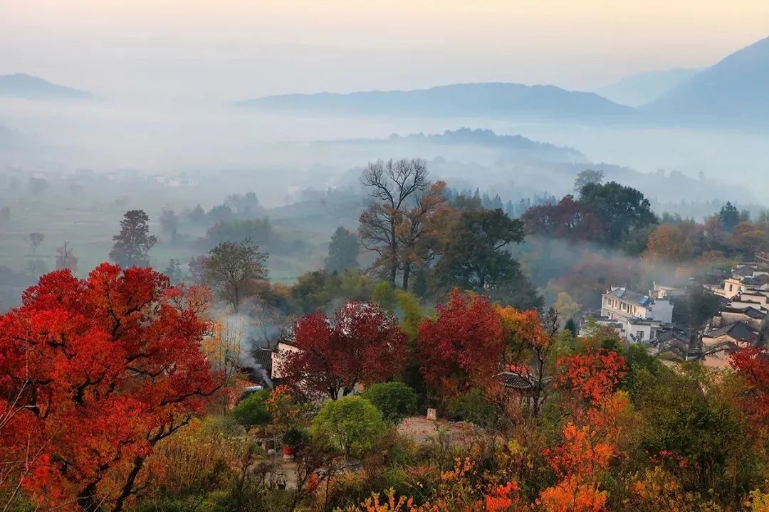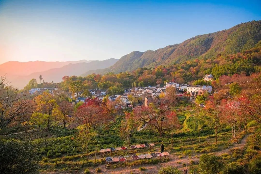 每到秋天,枫香、乌桕林五彩斑斓,美不胜收。树叶由青绿色逐渐变成浅黄色、橘黄色、橙黄色、金黄色、黄色、浅红色、红色、深红色、紫色、酱红色、殷红色、血红色、淡红色,所谓“塔川秋叶红、霜重色愈浓”,塔川秋色也因此声名远扬。