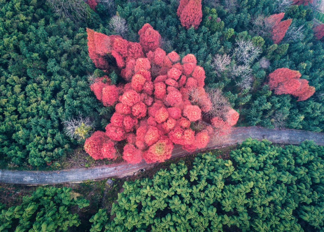 如果给每个季节都选一种颜色的话,想必不少人都会给秋天贴上金黄色的标签吧。但在长三角的秋天里,热情似火的红枫,挺拔恬静的红杉,还有又圆又萌忙着换装的红叶地肤……都毫不逊色。今天,就去领略一番“当红”的别样风景吧。