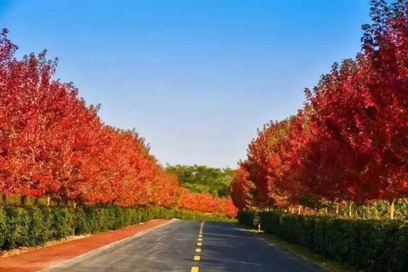 青枫公园内色叶树种多达70余种,枫叶层林尽染,婀娜展示着秋天里的最美风景。